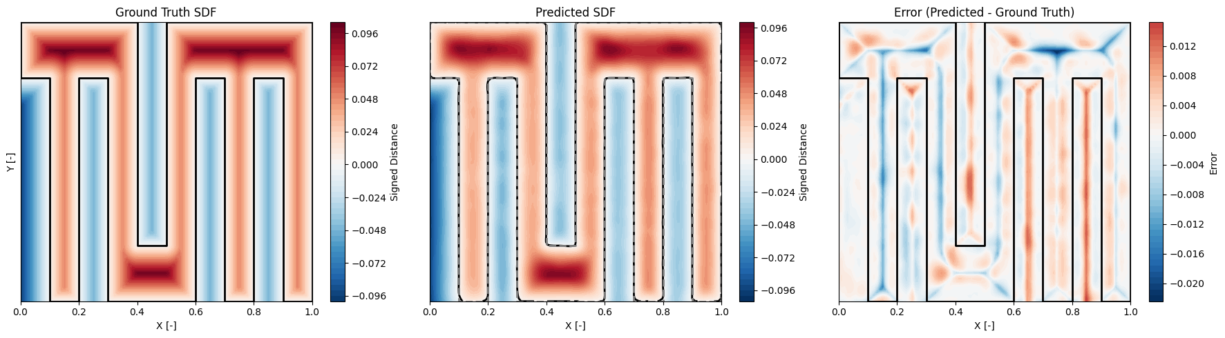 Pytorch版本的具体实现在这里,原作者使用Tensorflow实现了SDF模型的训练,并称预测了该多边形上的Poisson方程,但PINN的预测似乎没有实现,而是在参考场上加了一个随机噪声谎称PINN预测值,后续我也许会实现。