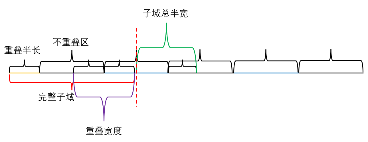 完整子域的长度由不重叠区宽度与重叠区宽度组成